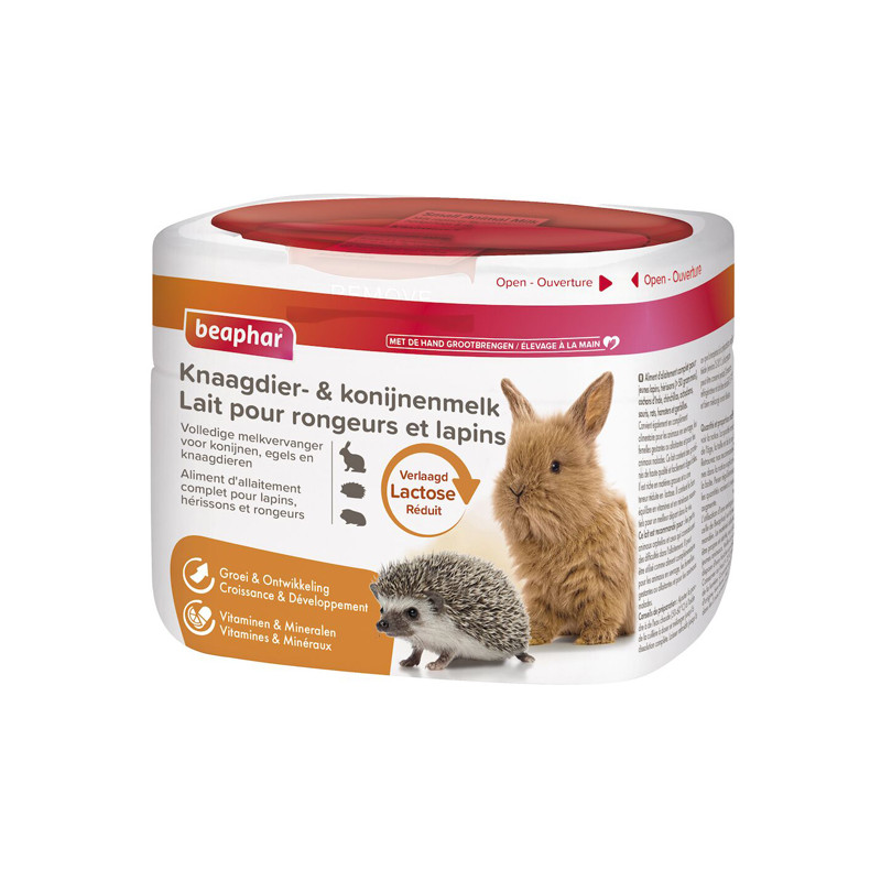 Le lait maternisé pour rongeurs et lapins de Beaphar est un aliment complet qui convient aux jeunes lapins, hérissons (de plus de 50 grammes), cochons d'Inde, chinchillas, octodons, souris, rats, hamsters et gerbilles.