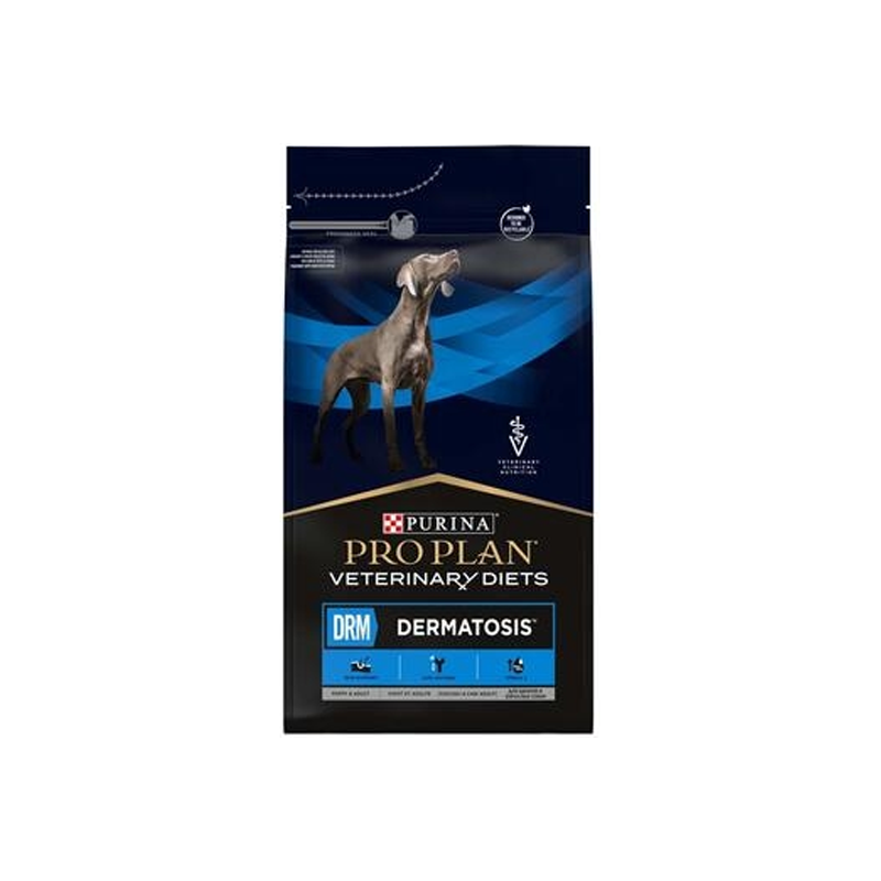 Purina proplan veterinary diets canine dermatosis contient des nutriments spécifiques pour la peau, qui aident à promouvoir une peau et un pelage sains.