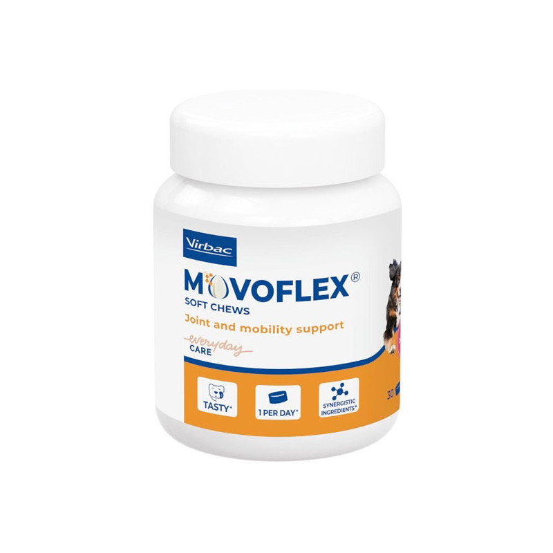Movoflex contient une formule unique et complète d’ingrédients clés pour aider à maintenir la santé et la mobilité des articulations, quel que soit l’âge du chien.