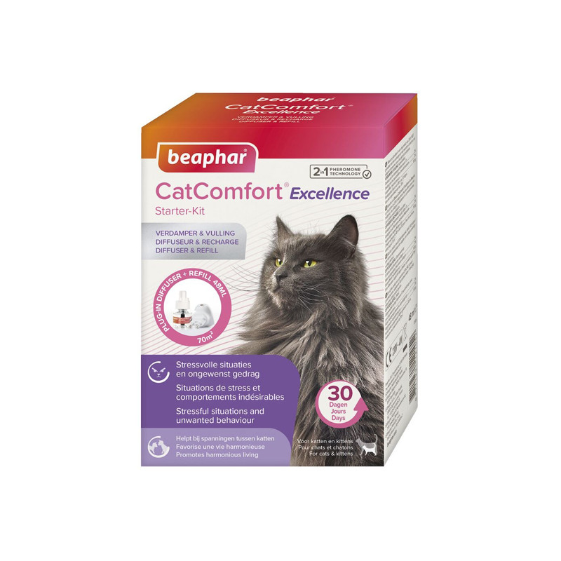 Le diffuseur CatComfort Excellence de Beaphar contient une combinaison spécifique de plusieurs phéromones reconnues par votre chat afin de lui offrir une solution simple et efficace pour le rassurer.
