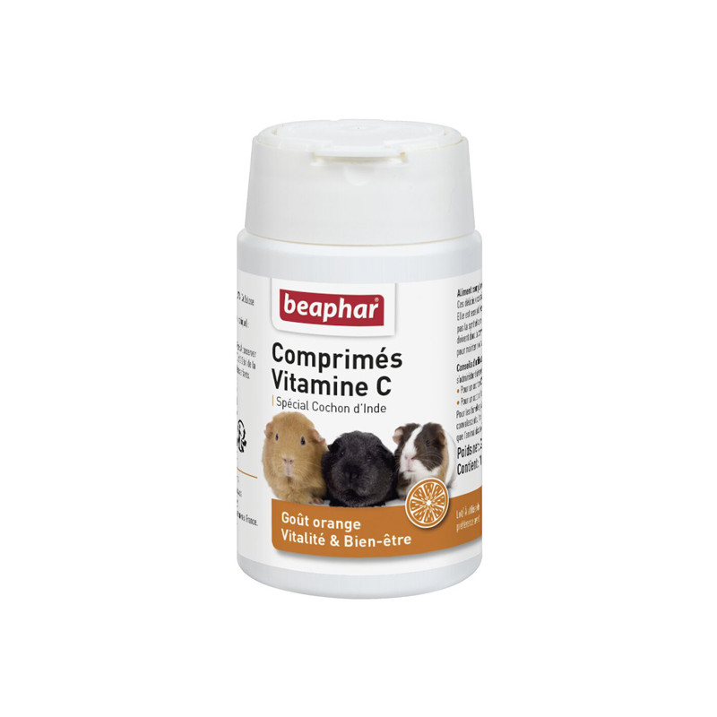 De même, il se dégrade très rapidement dans l’eau et au contact de la lumière et de l’air. Les comprimés de vitamine C Beaphar contiennent la quantité de vitamine C adaptée aux besoins quotidiens de votre cochon d'Inde.