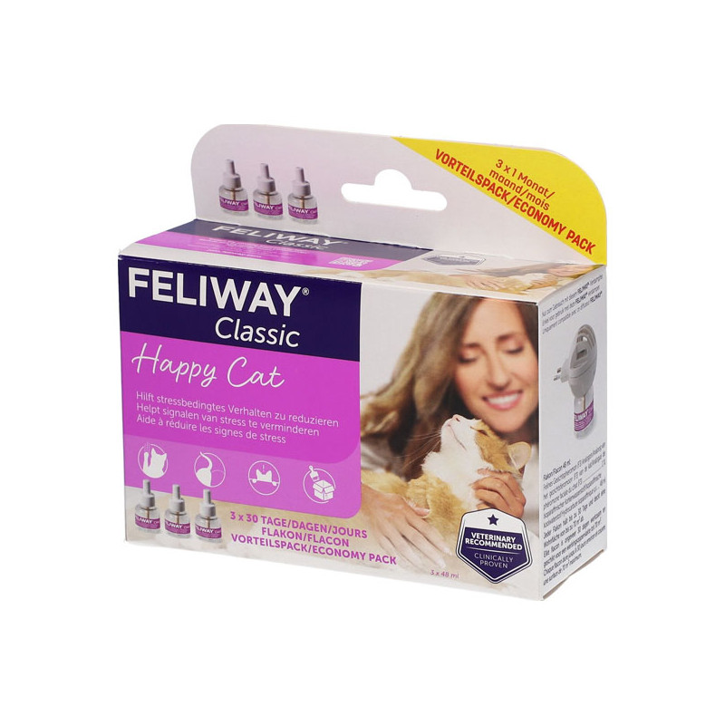 Remplacez la recharge FELIWAY Classic chaque mois pour prolonger le bien-être de votre chat. Aide à réduire les signes de stress comme :