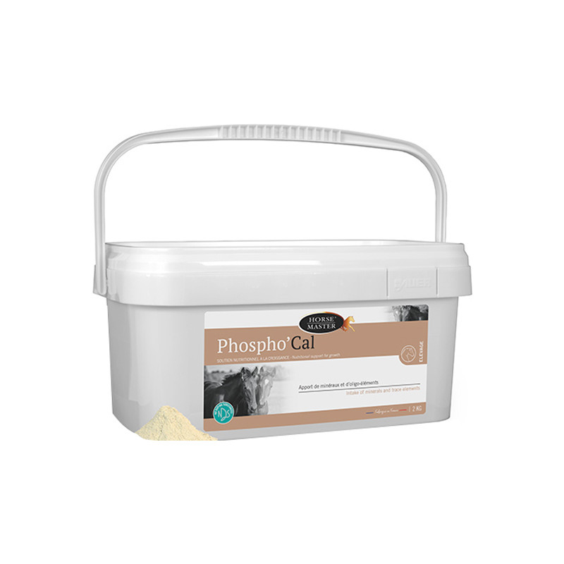 PHOSPHO'CAL est un minéral à base d'algue rouge, naturellement riche en calcium et en magnésium, de minéraux et d'oligo-éléments, assurant un apport équilibré pour compléter la ration du jeune cheval et pour couvrir ses besoins accrus liés à la croissance.