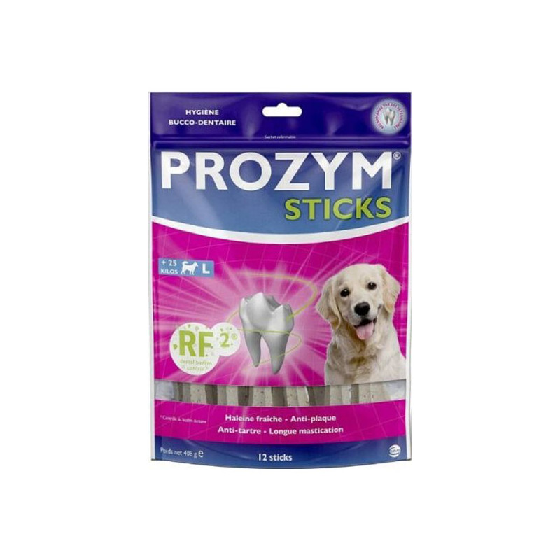 Les STICKS PROZYM RF2 sont des sticks dentaires vegan à usage quotidien pour l’hygiène bucco-dentaire des chiens.