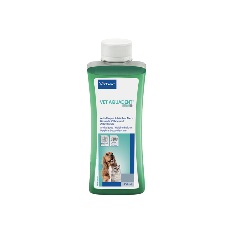 VET AQUADENT avec la technologie FR3SH, Erythritol, Inuline, Pomegranate (extrait de Punica granatum), est recommandé pour maintenir une bonne hygiène bucco-dentaire en luttant contre la plaque dentaire.