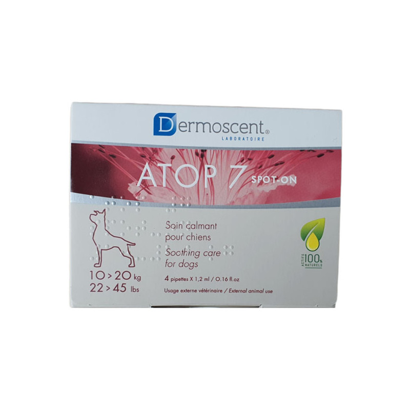 ATOP 7 spot-on est le 1er spot-on contenant exclusivement des ingrédients d'origine naturelle pour favoriser la réparation de la barrière cutanée et contribuer à apaiser les peaux irritées.