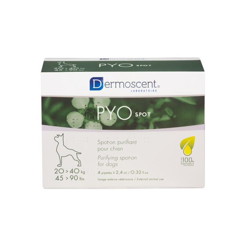 PYOspot est le 1er et unique spot-on spécialement formulé pour aider à purifier et rétablir l’équilibre de la flore cutanée chez les chiens sujets aux déséquilibres récurrents du microbiote cutané.