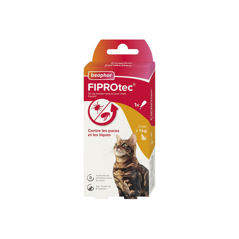 Les pipettes FIPROtec de Beaphar permettent de traiter et prévenir les infestations par les puces ou par les tiques chez le chat grâce à l'action du Fipronil.