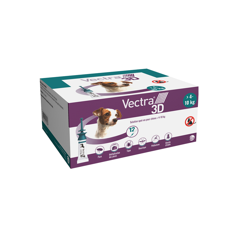 Veto Boutique - Ceva Vectra 3D solution spot-on pour chiens de 4 à 10kg 12 pipettes