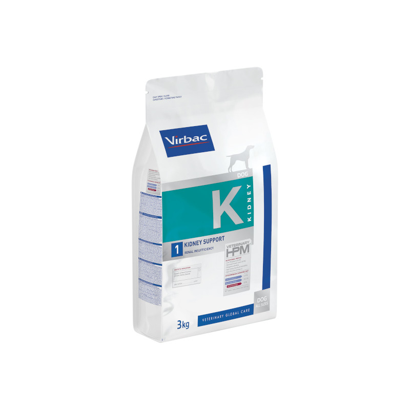 - VETERINARY HPM DOG K1 KIDNEY SUPPORT permet une prise en charge nutritionnelle globale des chiens souffrant d’insuffisance rénale chronique.
