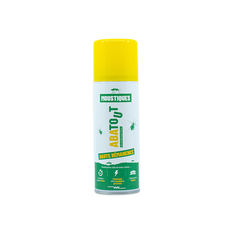 Abatout Laque Anti-Moustiques permet un effet choc et d’abattage immédiat ainsi qu’une action persistante dans le temps grâce à sa haute rémanence.