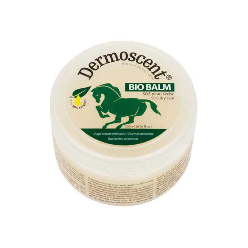 La formule nourrissante et résistante à l’eau de Dermoscent BIO BALM pour cheval, à base d’ingrédients bio-certifiés, est spécifiquement conçue pour diminuer la sécheresse cutanée.