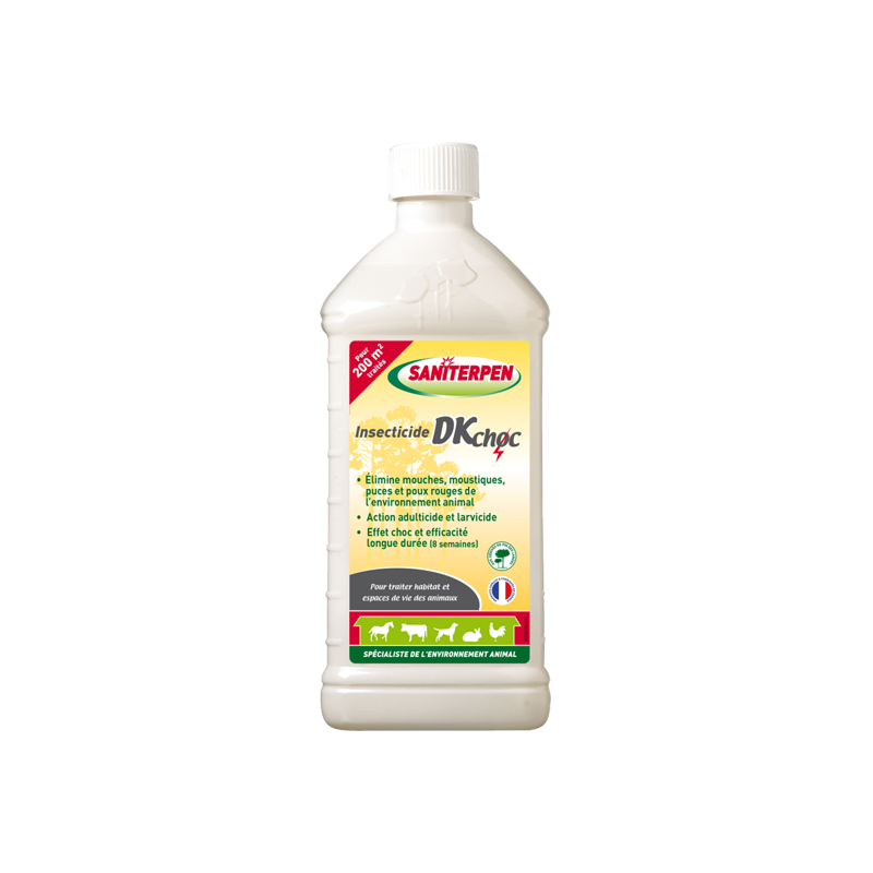 Saniterpen Insecticide DK CHOC est un puissant insecticide adulticide et larvicide concentré qui élimine efficacement les insectes grâce à sa double action (par contact et par ingestion).