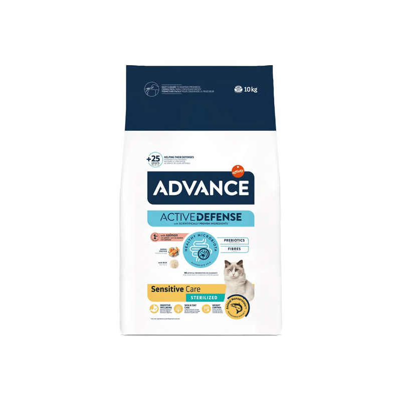 Advance Sterilized Adult Sensitive Care est spécialement recommandé pour aider à la digestion des chats adultes stérilisés.